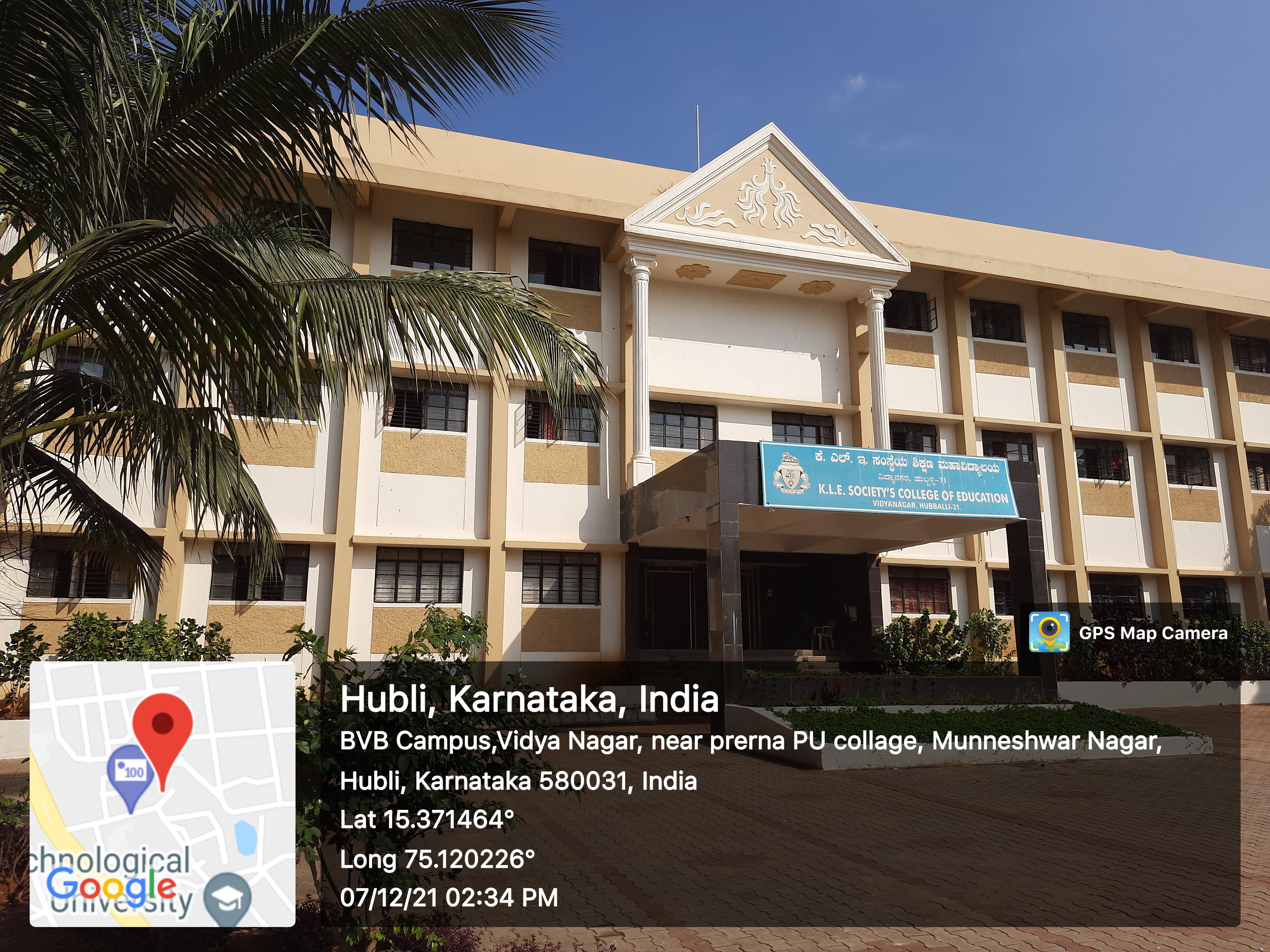 K.L.E. Society's college of Education, Hubli was started in 1986 in the J.G. College of Commerce premises. Later in the year 2000, it has been shifted to a new, beautiful building situated in a well spacious area in the B.V.B. Campus. The College aims at preparing teachers who help to shape the tender minds into humane, creative & innovative citizens of the society. The institution has focused to meet the demands of modern society providing skillful training to student teachers. The college has a local governing body which monitors and guides the academic & administrative aspects of the college.